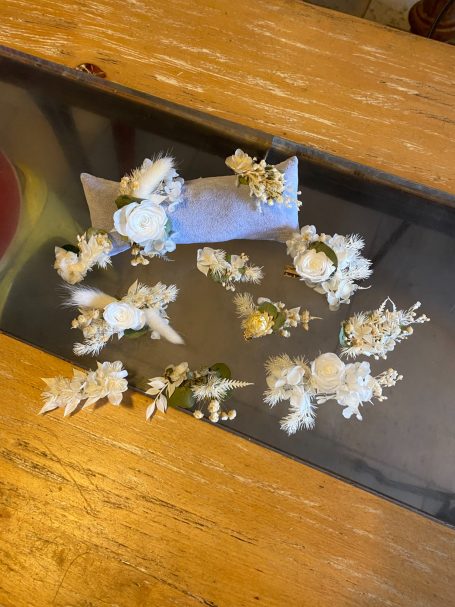 Deux options s'offrent à vous : travailler avec des fleurs fraîches ou des fleurs séchées, selon vos préférences. Emma vous proposera une solution sur mesure, avec un large choix de créations pour s'adapter à votre budget